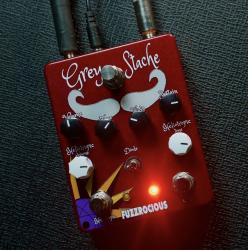 Grey Stache is a mids-focused fuzz built to keep you present in a band mix. It goes from light fuzz/crumbly breakup through heavy, aggressive fuzz.