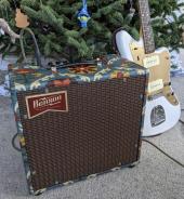 So, what does all of this mean? An overdrive circuit is set up for low-medium drive. It pushes into a power amp IC which provides a blast of volume. A gain pot provides glitchy, fuzzy tones at counterclockwise and clear, low gain, chimey tones at clockwise. If you start fully clockwise, you’ll hear gain turn to heavier then fuzzy tones as you roll back counterclockwise.