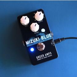 Mizuki Blue runs off of a standard 9 volt power supply with a negative center pin, and can be ran up to 18 volts for more headroom and output volume.